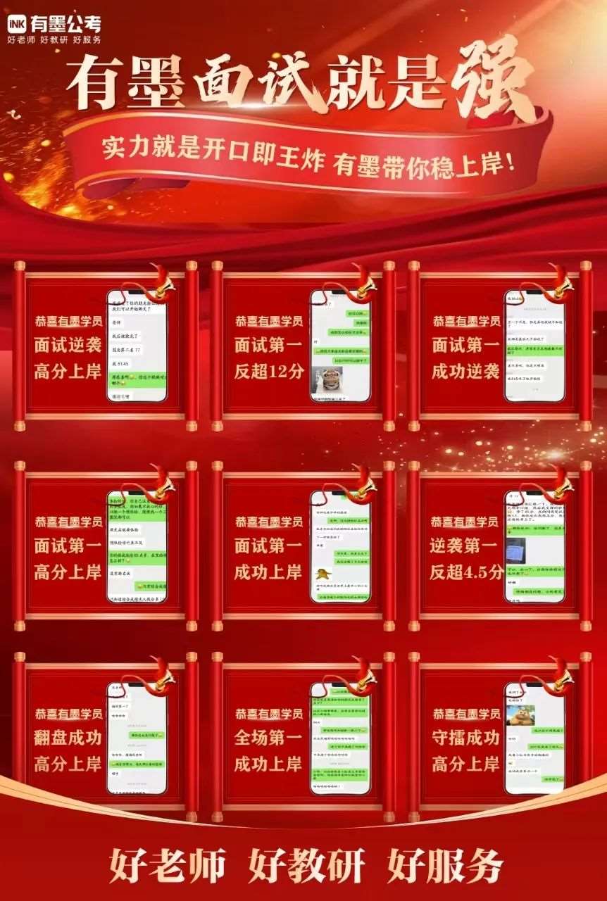 少数岗位面试*占总*的50%,即笔面比例为5:5。此时,笔试原始*每1分,面试需0.5分即可保持优势(或被对手)。