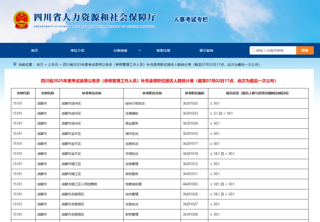 最后一次公布!2025年四川省考补录各岗位报名情况