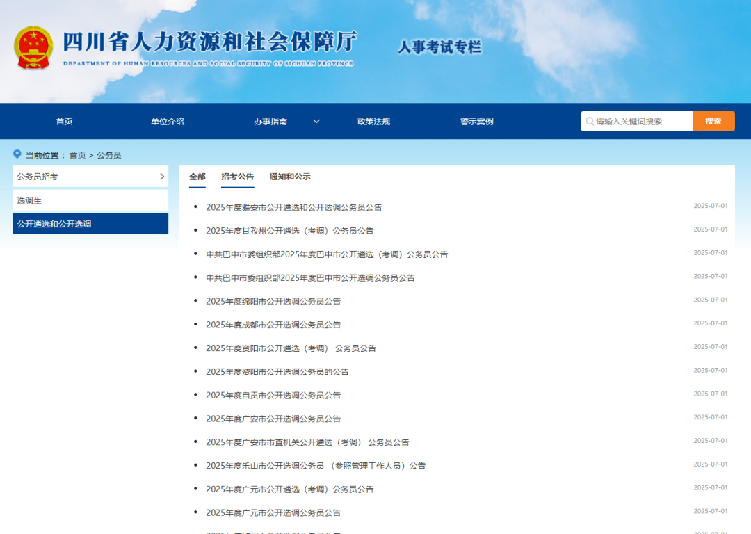 今天(7月1日)早上,各地市州陆续发布公告。2025下半年四川公务员遴选&选调正式开始啦!