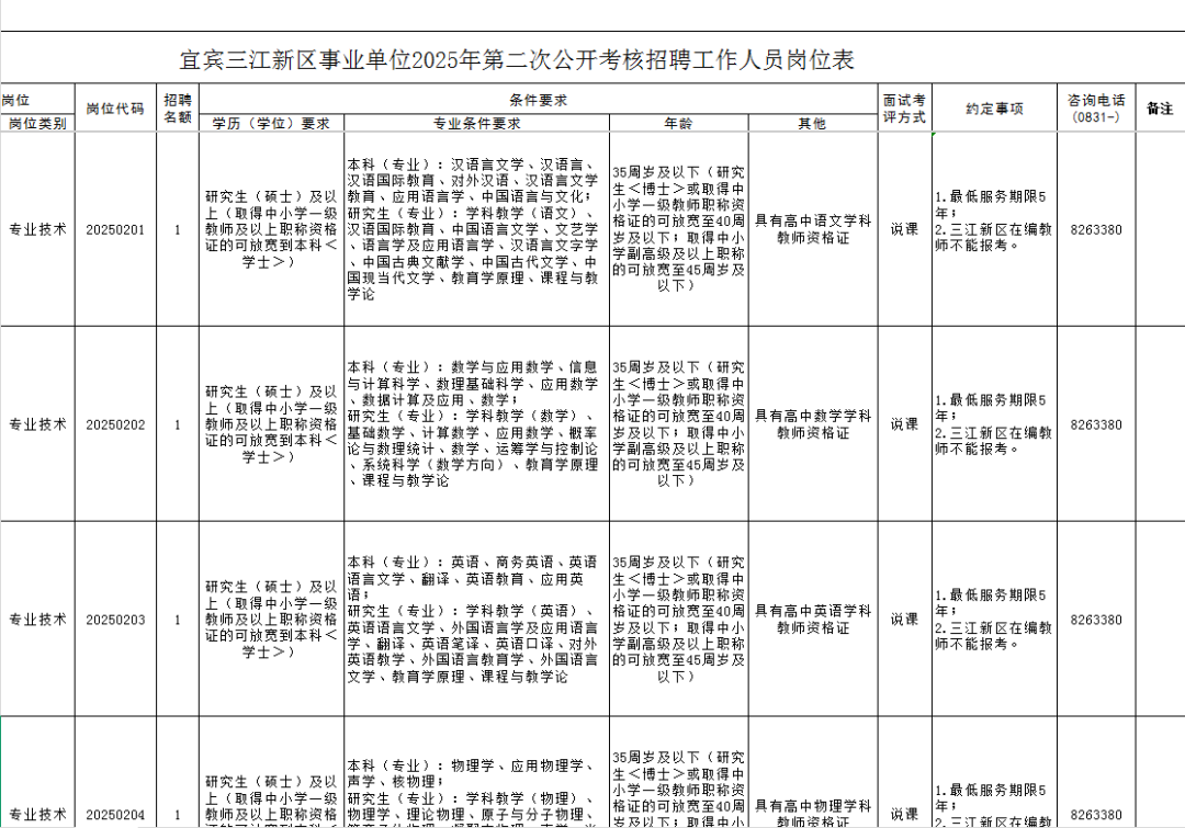 岗位表及完整公告