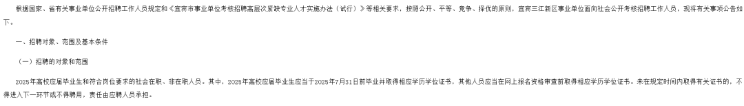 【报名中】 宜宾市三江新区事业单位最新招聘100人!