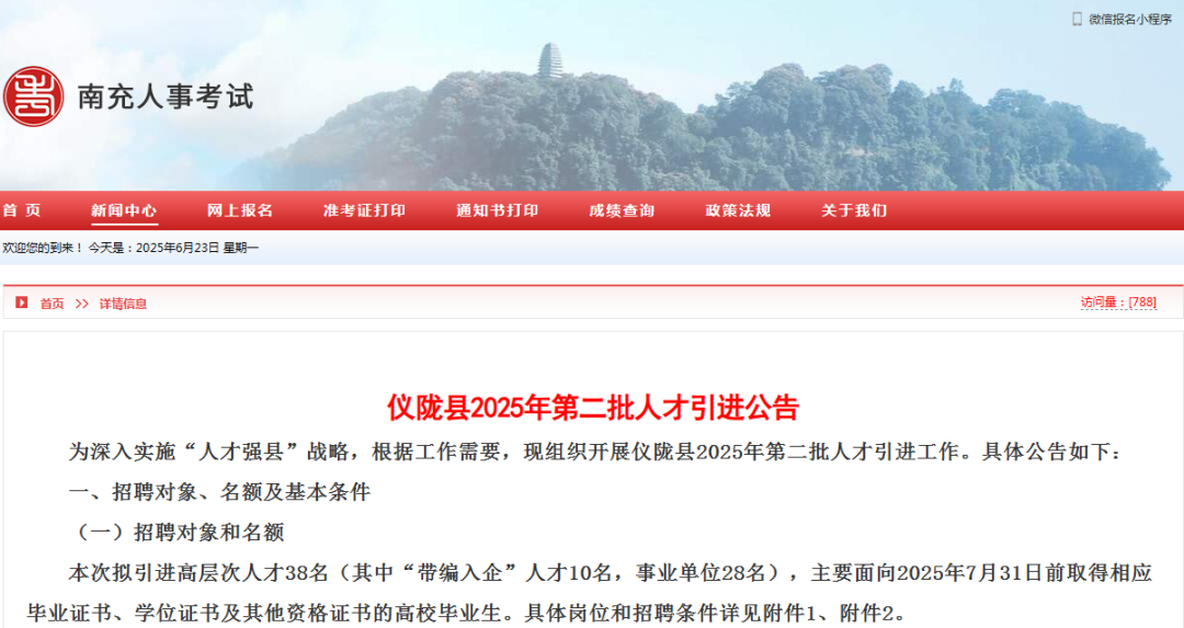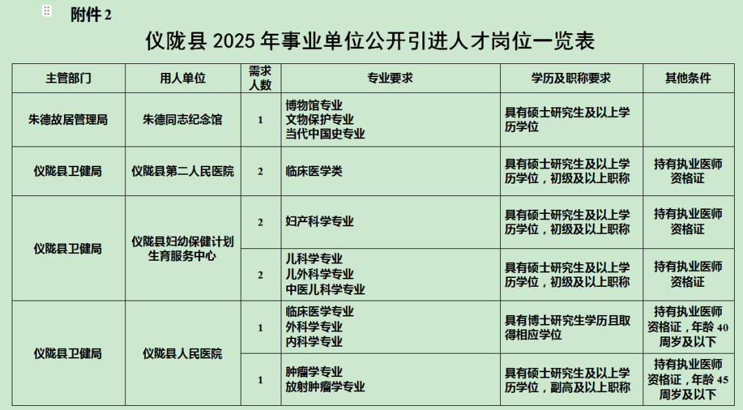 南充市仪陇县2025年第二批人才引进公告
