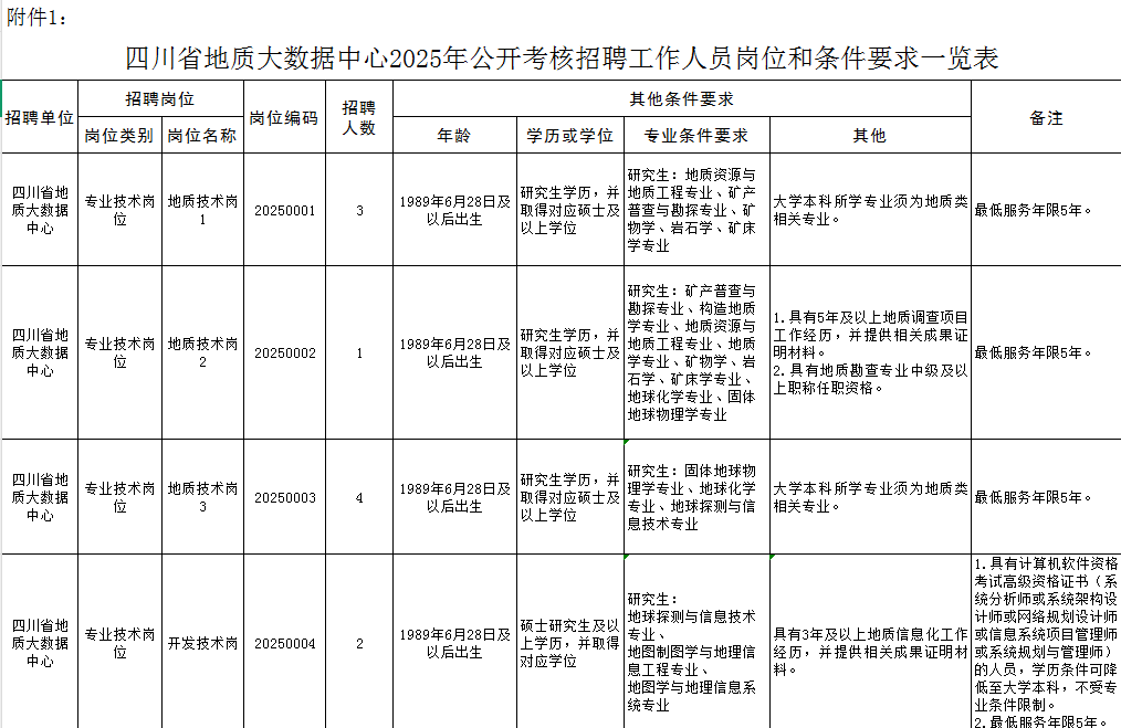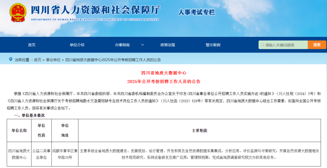 四川省地质大数据中心2025年招聘公告!