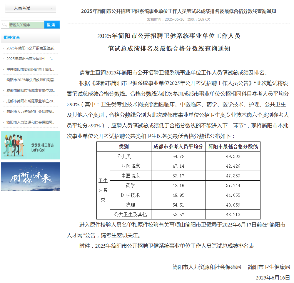 25年简阳市卫健委事业单位笔试排名