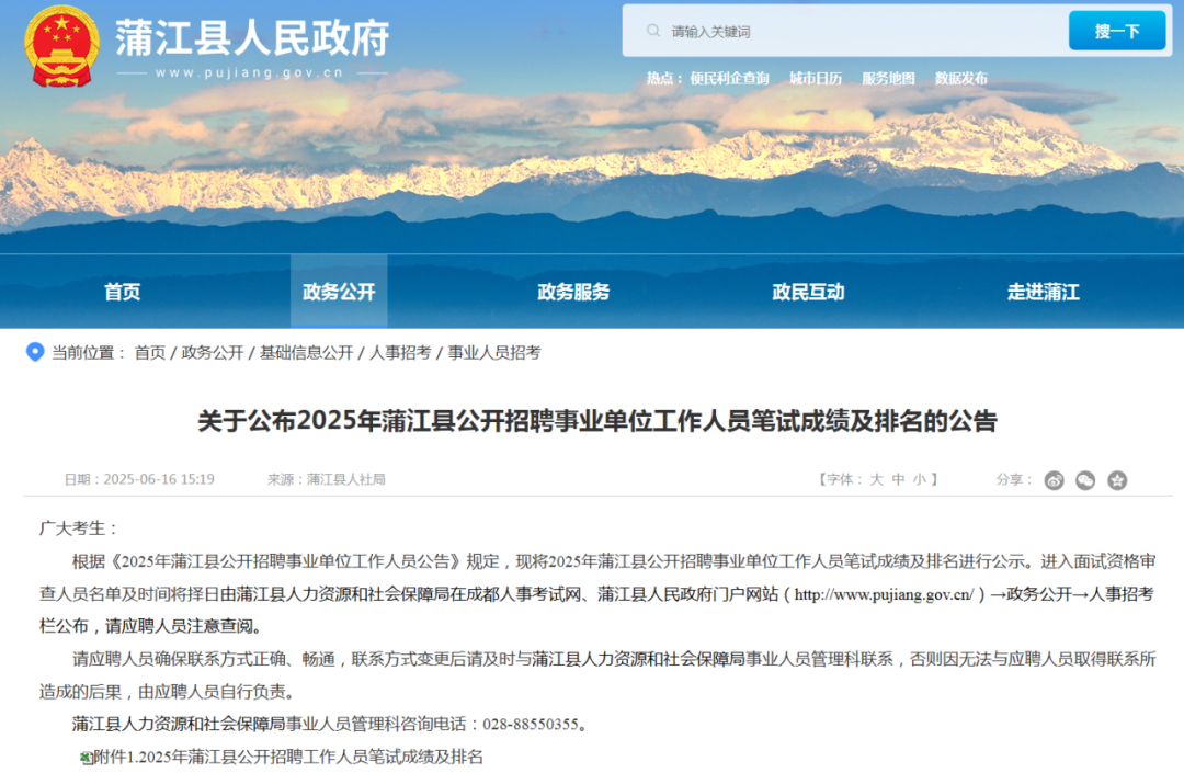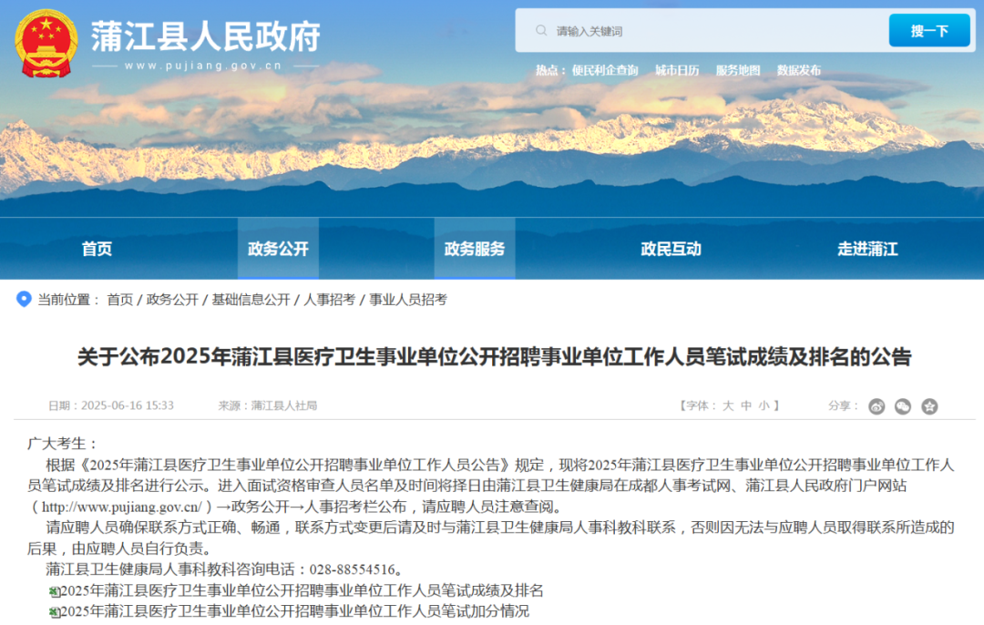 25年蒲江县事业单位笔试排名