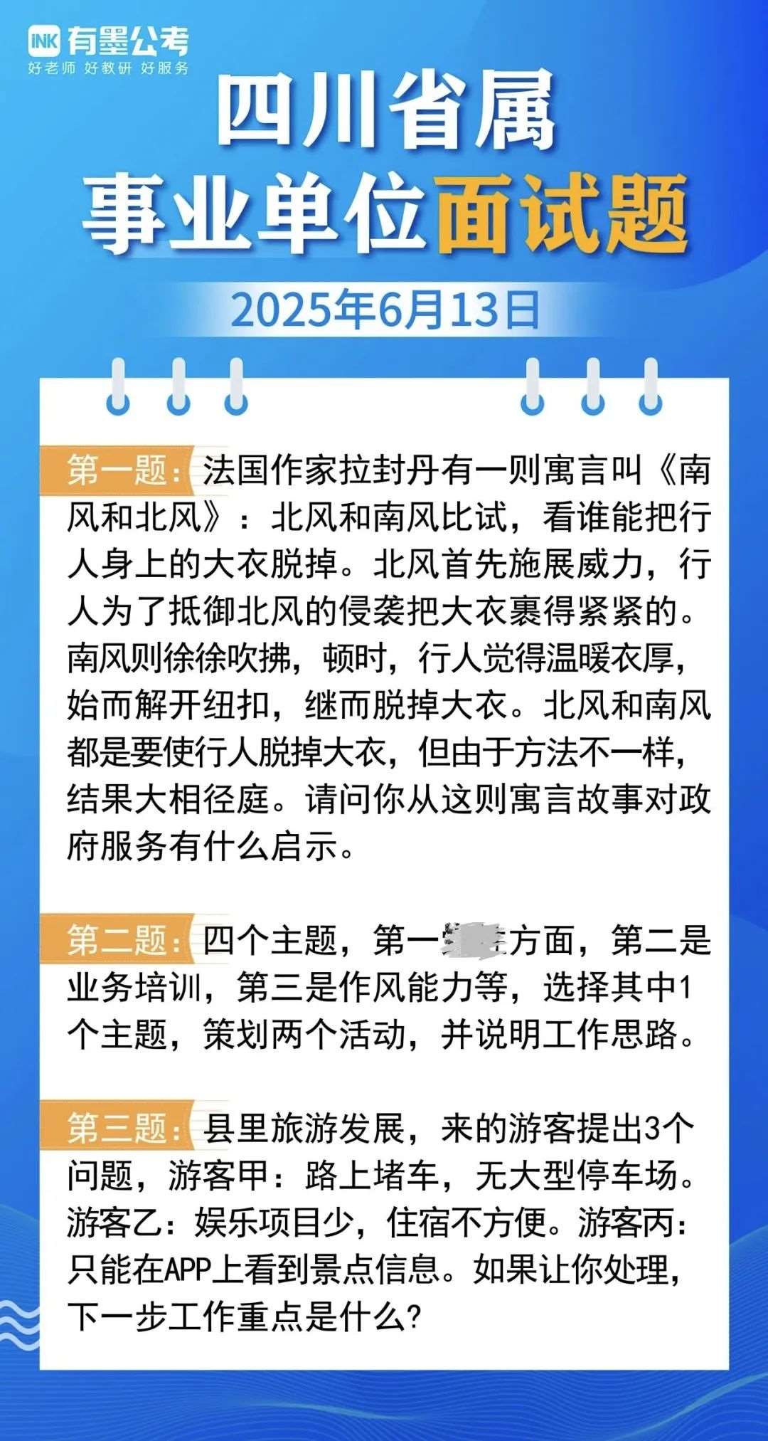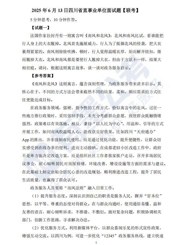 6月13日四川省属事业单位面试题及解析